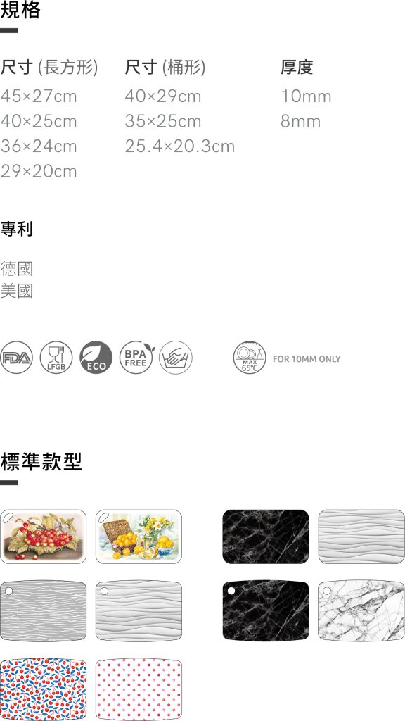 首頁 所有產品 夾圖厚砧板 夾圖厚砧板 專利夾圖技術使圖案不會因清洗及使用後溶出或消失。 精美圖案妝點您的廚房。 背面止滑面將砧板固定在檯面上,增加使用安全。 歡迎客製化設計。 分類: 夾圖止滑砧板, 所有產品 描述 相關商品 披薩墊 所有產品, 餐墊/披薩墊查看內容 雙面分色砧板 所有產品, 新品上市, 厚砧板查看內容 雙色止滑砧板 所有產品, 厚砧板查看內容 書籤式薄砧板扣環組 所有產品, 可彎薄砧板查看內容